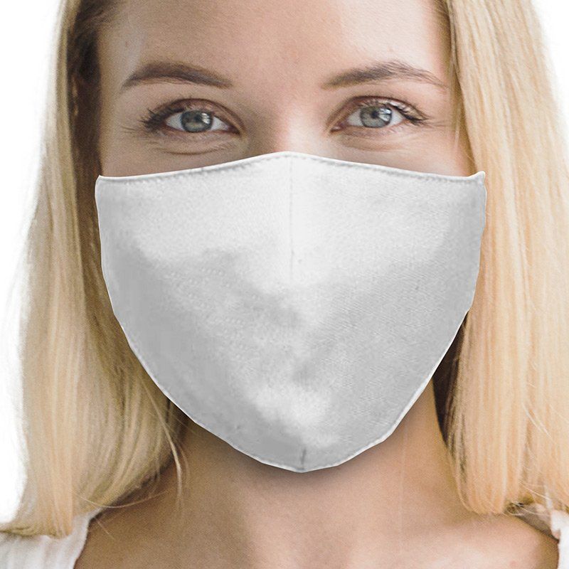 Het mondkapje bestaat uit drie lagen. De middelste laag stof bevat het actieve zilvermembraan.